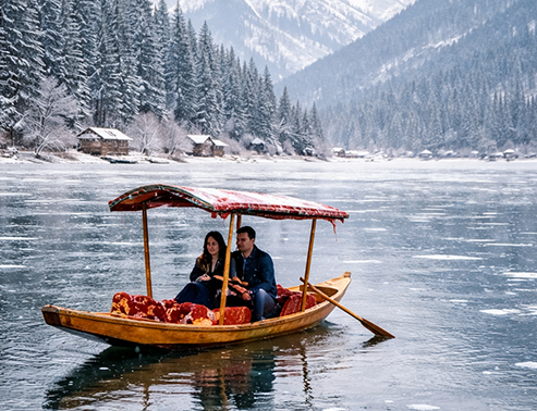 Celebrate love with a 3 Nights Valentine’s Kashmir package - Romantic escape for couples.Celebrate love amidst snow-covered mountains, peaceful valleys, and the timeless charm of Dal Lake. This specially curated Valentine’s escape to Srinagar combines romance, nature, and comfort, from a serene Shikara ride to a magical candlelight dinner and breathtaking day trips to Gulmarg and Pahalgam. A perfect getaway for couples seeking unforgettable memories in the heart of Kashmir.